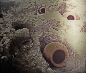 Мне трудно было представить, зачем нужен такой объем при данной форме. Правда, в Израильской крепости Масада, в похожих емкостях при раскопках обнаружили следы хранения продуктов — зерна, вина, оливок... Но те кувшины имели плоское дно, на котором и стояли в складских помещениях.