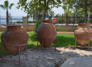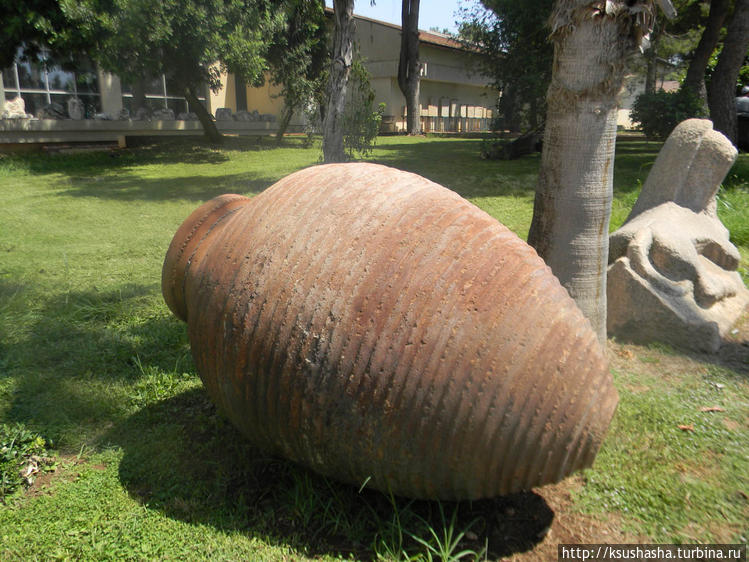 Огромные кувшины, без особых украшений и не приспособленные стоять вертикально, во множестве представлены в парке музея.