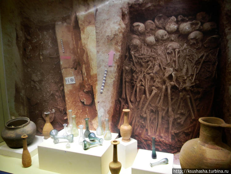 А зачем эти? Ответ неожиданный. Это — гробы, ну или предшественники саркофагов. Часть музейной экспозиции подробно рассказывает, как эти кувшины использовались и в каком виде обнаружены захоронения. Некоторые фото немного неприятные, уж извините. Но как иначе передать то, что я узнала.