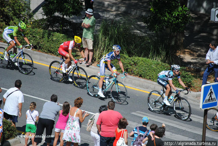 У Вас не бывало такого, что Вы чего то очень очень долго ждали, а потом, то чего ждали прошло так быстро, что почти и не заметили. Так вот жители Гранады в этом году очень ждали испанского велотура Vuelta a España. Усилили охрану, перекрыли улицы, по городу разъезжали машины спонсоров, раскидывая с машин рекламные презенты ничего не подозревающим прохожим. А потом велосипедисты промчались мимо в считанные секунды. Впрочем, велосипедисты выехали не свежим воздухом подышать. Это понятно, в скорости и скрыт весь смысл мероприятия. Но все равно, все промчалось мгновенно. Успела только несколько раз нажать на кнопку камеры.