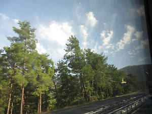 Дорога очень красива. Горы, сосны, море. Время пролетит незаметно.