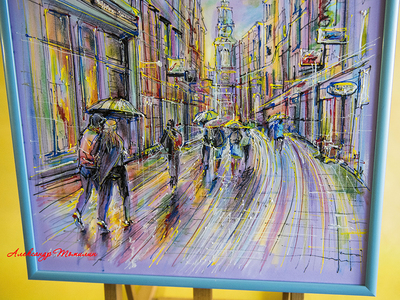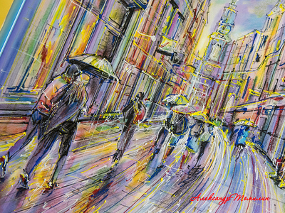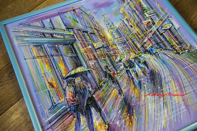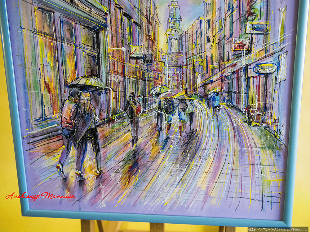 В общем, город интересный во всех отношениях. Мы чуть-чуть прогулялись по нему с зонтиками — вместе с героями моей картины. А вот, кстати, и прототип нашей картины.