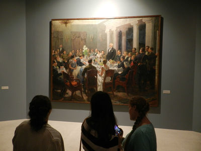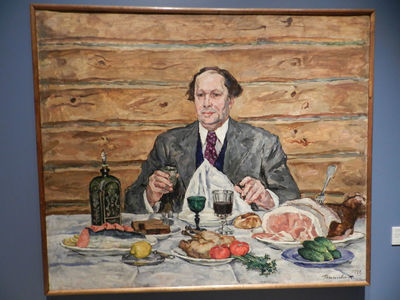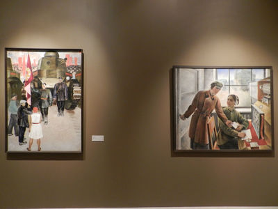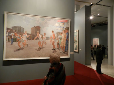 Одновременно с этим на нижнем этаже Манежа выставка картин "Романтический реализм". Здесь представлены картины известных художников довоенного периода.