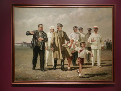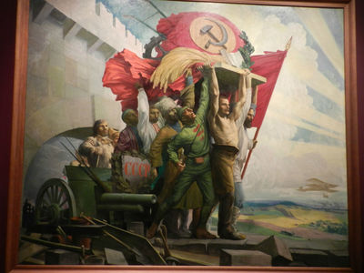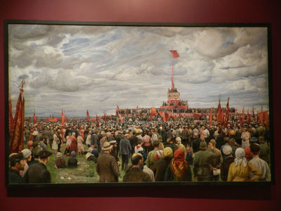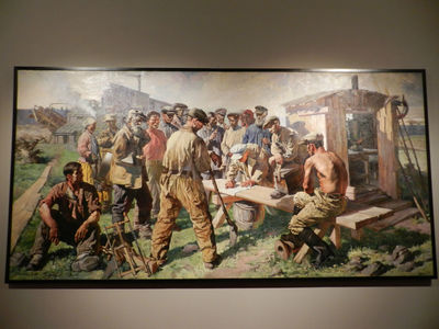 На картинах эпохи соцреализма главное действующее лицо — трудовой рабочий народ.