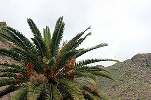 2. Канарская финиковая пальма (Phoenix canadensis) — Эндемик Канарских островов. Это очень эффектное высокое (10—30 м.) дерево с большими перистыми листьями. Плоды у Канарской финиковой пальмы в отличие от Финика пальчатого (настоящая финиковая пальма) оранжевого цвета, собраны в огромные кисти и на вкус не представляют из себя ничего интересного.