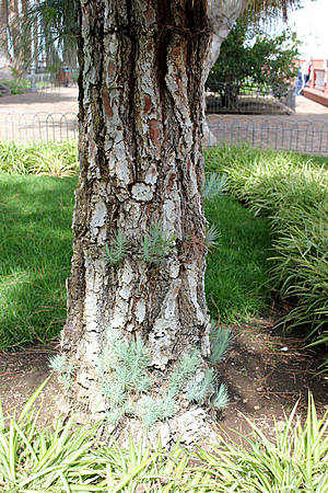 1. Канарская сосна (Pino Canario) – растение способное закрепляться корнями даже на голой вулканической породе. Легко восстанавливается после пожаров. Древесина канарской сосны очень прочна и огнеупорна, поэтому она является ценным строительным и поделочным материалом. Внешне похожа на сосну повсеместно встречающуюся на территории Евразии, но имеет важное отличие. В одной завязи у нее не две, как обычно, а три иголки. Иглы очень длинные, достигают 30-ти сантиметров. С их помощью сосна получает влагу из атмосферного воздуха. Канарская сосна (Pinus canariensis) — растение эндемик, произрастающее исключительно на Канарских островах.
