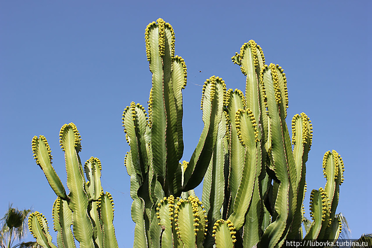3. Молочай кана́рский (Euphórbia canariensis) — ещё один красивый эндемик островов. На мой взгляд это красивое украшение Канар. Но надо помнить, что все представители Семейства Молочайные (Euphorbiaceae), содержат млечный сок, бело-молочного цвета. Он вызывает ожоги, может вызвать слепоту, серьёзные поражения кожи и отравления, долго не заживающие язвы, а у некоторых представителей этого семейства сок просто ядовит. Поэтому рекомендуется только любоваться молочаями и стараться не трогать, особенно из любопытства !!!