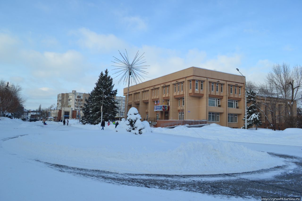 В некоторых местах снега не то что по колено — выше головы.Но центральная площадь Энгельса хоть и припорошена снежком,