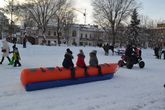 Но центральная площадь Энгельса хоть и припорошена снежком,
