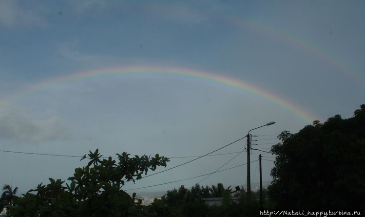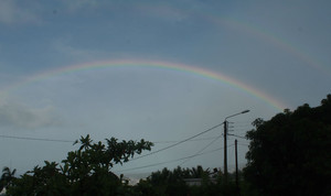 Сегодня на секунду выглянуло солнце и как чудо появилась радуга, но на завтра обещают опять дождь, очередной циклон кружит вокруг острова, и не нападает, но и не уходит, машет хвостом и опять нагоняет свинец...