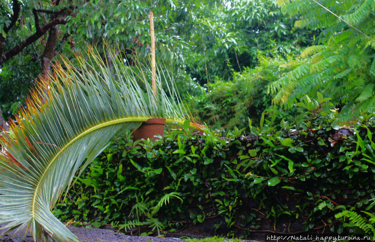 Потоки дождя смывают любовно посаженные мной цветочки, пальмы болтаются на ветру как веники и того и гляди, что тебя прибьет сорванный ураганом кусок красоты