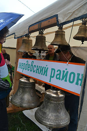 Потихоньку, начал собираться домой, но перед этим решил шашлычку прихватить с собой и тут увидел интересную штуку...вернее произведения искусства. На стенде жердевского района увидел колокола..настоящие церковные. Оказывается, есть умелец, который льет колокола для храмов, по старинной технологии. Я даже дернул за язык колокола...звук потрясающий!!!!