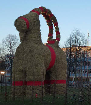 Каждый год за четыре недели до Рождества в шведском городе Евле (Gävle) на площади Slottstorget, в самом центре города, устанавливают гигантскую соломенную фигуру Юльбокка.