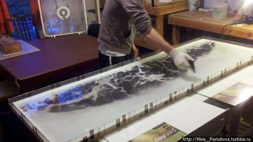 Он пробует и другие материалы, так в новых своих работах использует гелеобразные вещества для достижения прозрачного эффекта. "Я хочу отойти от смолы и посмотреть, какие еще материалы я могу использовать и как можно добавить в работы больше графических и рисованных элементов", — объясняет Брукс.