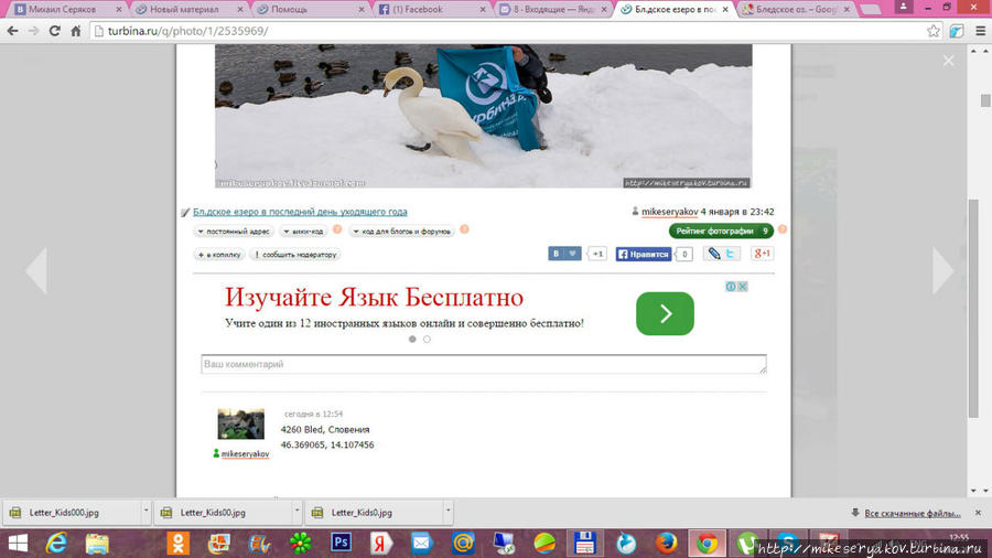 И напоследок я хотел пошагово объяснить как вставлять фотографии на карту на примере своей фотографии с лебедем. Она была сделана в Словении на озере Блед. Для начала я открываю