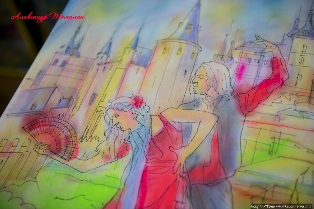 На этот раз в историях художника переносимся в Испанию к зажигательным ритмам фламенко. Я давно люблю этот жанр. Сам много лет посвятил гитаре. А будучи уже фотографом — снимал репортажи о фестивалях фламенко. Зрелище это всегда — потрясающее — буря страстей, зажигательный ритм, нарядные танцовщицы. Вот теперь положено начало новой серии картин на эту тему.