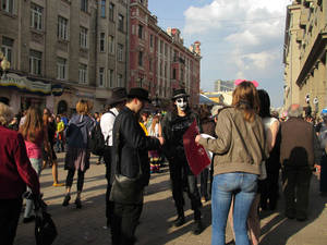 Мы пришли в самый разгар веселья, примерно в 17:20, а ушли с Арбата в 18:30. А праздник всё продолжался. Люди обнимались, целовались, смеялись, пели, танцевали, пускали мыльные пузыри... Нам тоже достались объятия и поцелуи.