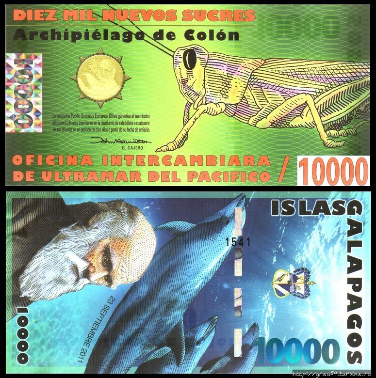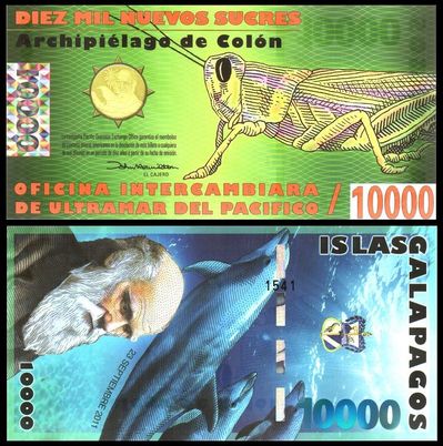 Других владельцев островов не видать и не слыхать. Поэтому все выпуски денег для островов Галапагос являются фантастическими.Выпущены две серии монет в 2008 и 2008 — 2013 годах (в 2013 году — монета в 25 пиеза), а также юбилейная монета в 2009 году.