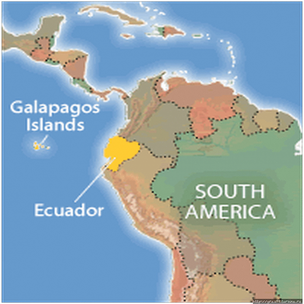 Галапагосские острова — группа островов на востоке экваториальной части Тихого океана, в 972 км к западу от Эквадора, состоящая из 13 основных вулканических островов, 6 небольших островов и 107 скал и намывных территорий.
