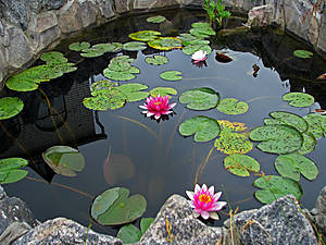 Цветы лилий всегда радуют глаз, а когда их собирается по три и больше, то пруд превращеются в цветущую клумбу:))