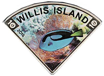 Аверс: В центре при помощи тампопечати на фоне морского дна изображена рыбка голубого цвета. Под рыбкой название на латинском языке — Paracanthurus Hepatus (Голубой Хирург). Вверху полукругом на английском языке название острова — WILLIS ISLAND. В углах (правом и левом) номинал — 10 долларов. Слева чуть ниже номинала — год чеканки 2016.
