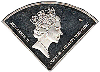 Реверс: В центре портрет королевы-матери Елизаветы II вправо. Справа по краю монеты надпись: CORAL SEA ISLANDS TERRITORY (ТЕРРИТОРИЯ ОСТРОВОВ КОРАЛЛОВОГО МОРЯ). Слева по краю надпись: ELIZABETH II.