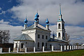 Вообще-то уже пора было начинать спрашивать у редко встречающихся людей в бескрайних просторах пустых полей «А мы в Сумароково правильно едем?» И знаете, мы не сразу почувствовали подвох. Нам кивали и показывали рукой «тудааа». Дальше, в бескрайние дали, за горизонт. Только на втором человеке мы начали напрягаться. В нас внимательно вглядываются, хитро прищуриваются и кивают. Слов произносится минимум. Слушайте, ну с иностранцами в иностранной стране и то больше говорильни в таких случаях. Потом мы въехали еще в забыла-какое-село, большое кстати, и людей на улице к удивлению было много! Ну, по сравнению с «на улице ни-ко-го». Пофотографировали колоритную, некогда большую и видимо очень красивую церковь.