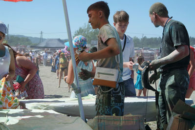 Самое главное — торговая точка с краской находилась на самой территории и можно было без конца подходить и покупать краску. Большая очередь была только в начале, но предприниматели лихо "раскидали" ее и не остались в накладе — было продано полторы тонны краски.