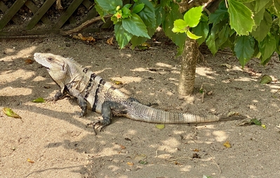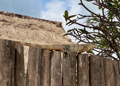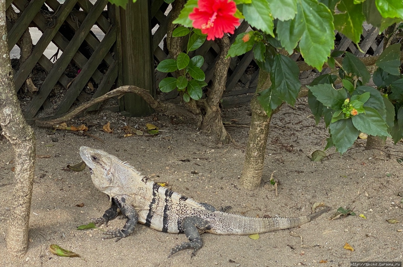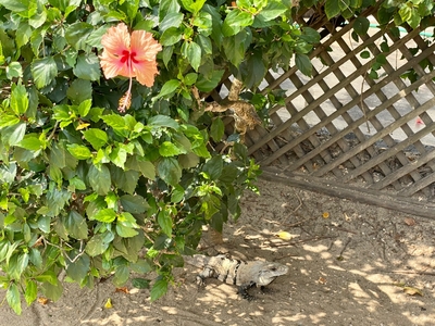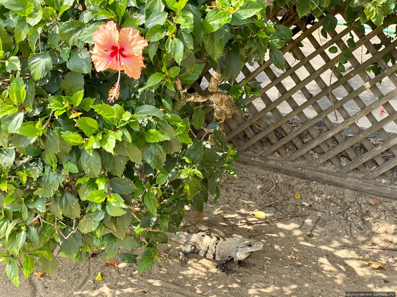 Сегодня мы встретили две штуки на территории нашего отеля. Одна уже отдыхала под кустом гибискуса...
