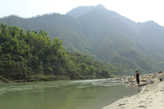 Утро в Ришикеше. Я выбрала себе местечко на берегу Ганги, чтобы помедитировать. Саша ушел еще раньше, он более ответственен чем я. Заметила его прямую и светлую фигуру вдалеке, на плоском камне, пока пробиралась к узкой полоске желтовато-серого пляжа.