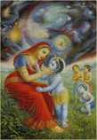 "Матушка Яшода заглянула в ротик своему сыну Кришне, чтобы проверить, не ел ли он глину, и увидела там, во рту у своего любимого мальчика, все галактики, вселенные и миры, всех богов и полубогов..."