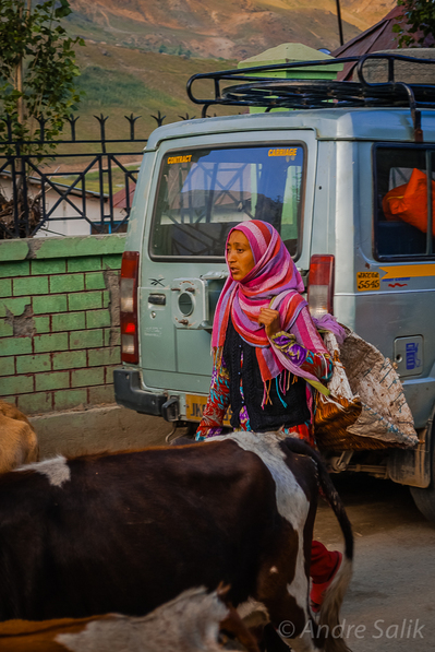 Дорога из Каргила в Шринагар. остановка в деревне. Мечеть , мусульмане