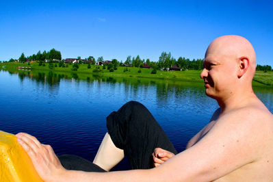 Мы с Женей на пару крутили водный велосипед. Наш третий товарищ Юра, отправившийся в эту поездку с нами, продолжал безмятежно спать в одном из домиков. Он юрист и работает по ночам. Мятежность — это вообще не про юристов.