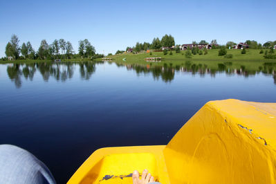 Спокойствие стоячей воды небольшого, но симпатичного озерца и отражения сочных и еще не покрытых летней пылью зеленых холмов и лесов навевали на размышления. Дело происходило до завтрака довольно рано утром, но светает в это время года часов в 5 утра, поэтому даже если уже было 7 или 8 часов утра, по закону относительности это утро уже не было таким уж и ранним. На самом деле солнце стояло высоко и уже было по дневному жарко. Но для нас это все равно пока было раннее утро. А утро заканчивается только после завтрака.