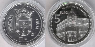 Справа от герба указано название страны-эмитента «ESPAñA». Справа название города — «CEUTA». В нижней правой части стоит знак испанского монетного двора. Внизу указан год выпуска монеты «2010». По окружности вдоль буртика расположены украшающие монету жемчужины.На обратной стороне монеты изображён фасад Муниципального дворца Сеуты.