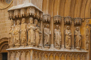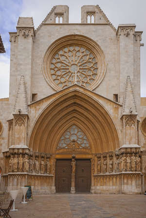 "Первый храм на холме в римской колонии Тарракон был посвящён Юпитеру, верховному богу римлян. С 382 года на этом месте был христианский храм вестготов (один из первых на Пиринеях), позже мечеть. В 1154 году у Таррагоны появился первый католический епископ — Бернат Торт, монах-августинец из Авиньона. Первый кафедральный собор располагался в здании ещё римской постройки и был посвящён святой Фёкле. Доподлинно неизвестно, когда был заложен новый романо-готический собор, но, согласно историческим хроникам, не ранее 1171 года". (из Вики)