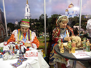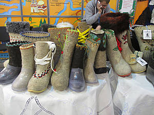 А потом опять разбежались. Я решила посмотреть, что нам предлагает Россия. Здесь было много интересного: были выставлены глиняные игрушки из города Коврова, липецкие кружева, алтайский мёд (я купила баночку) и даже валенки!