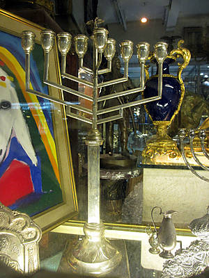 А, возвращаясь вечером в отель, мы смотрели на витрины уже закрывшихся магазинов, и я фотографировала различные ханукии — подсвечники.