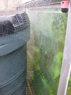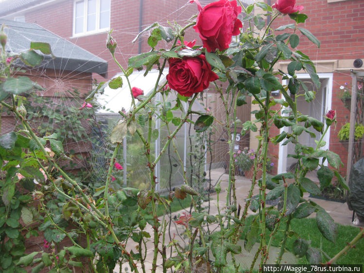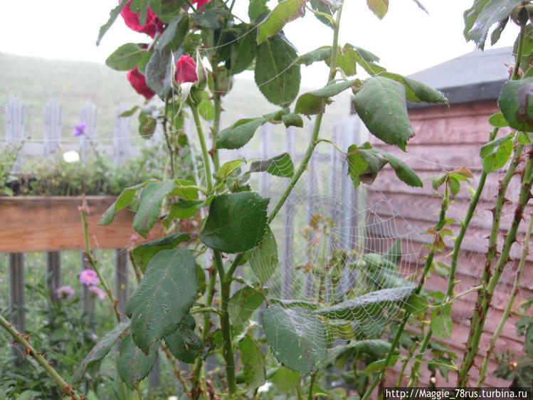 Больше всего досталось розовому кусту!!! Он был опутан тройным рядом паутины!!!