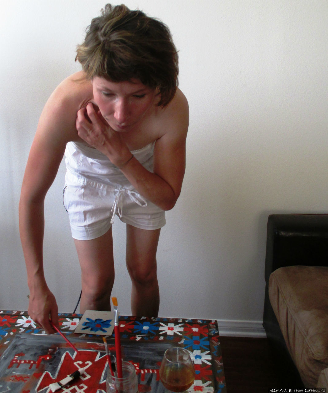Итак, пришли краски с Амазона, кисточки я привезла еще с Армении (кстати, очень рада, что притащила все канцтовары и мелочовку для шитья), нахожу ковер с простыми геометрическими узорами — и вместо музы и армянского воздуха у меня "Наири Арарат"... Укладываю детей спать и начинаю рисовать...