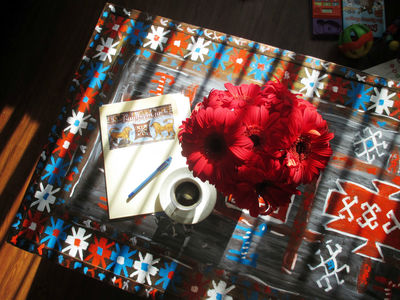 А хочется ведь красоты и уюта!.. Так или иначе в мелочах у нас присутствует армянская тематика — салфетки, рамки, немного посуда, и всенепременно — кулинария и алкоголь. Поэтому я решила преобразовать самый безобразный в доме предмет — потертый журнальный столик — в нечто армянское, чтобы собрать вокруг него из имеющихся мелочей уже вполне сносную дизайнерскую идею.