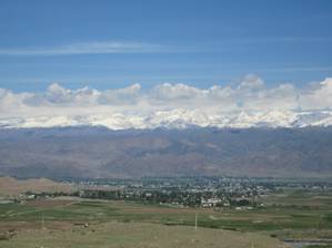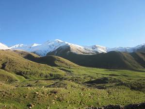А в окрестностях Бишкека снежные горы и зеленая трава не переставали радовать глаз