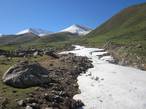 А в окрестностях Бишкека снежные горы и зеленая трава не переставали радовать глаз