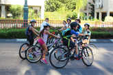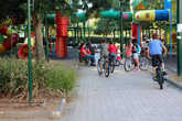 Самое большое раздолье — детям. Все дороги отданы малолетним велосипедистам.