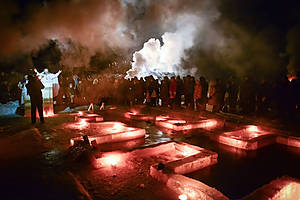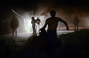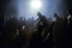 Успели вовремя, потом бы было не запарковаться. Неожиданно их — купающихся в ночь на Крещение — оказалось очень много, но язык не поворачивается назвать всех их верующими, иногда мат стоял — уши вяли. Порой казалось, что не святое действо а вообще вакханалия какая-то, пусть верующие не обижаются. Было ощущение, что на машинке времени куда-то в средние века перенесся.