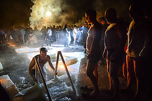 Поехал с друзьями снимать Крещение и сопутствующие купания в Красное Село, озеро Безымянное. Въехать в Красное, повернуть на главной площади налево, затем направо.