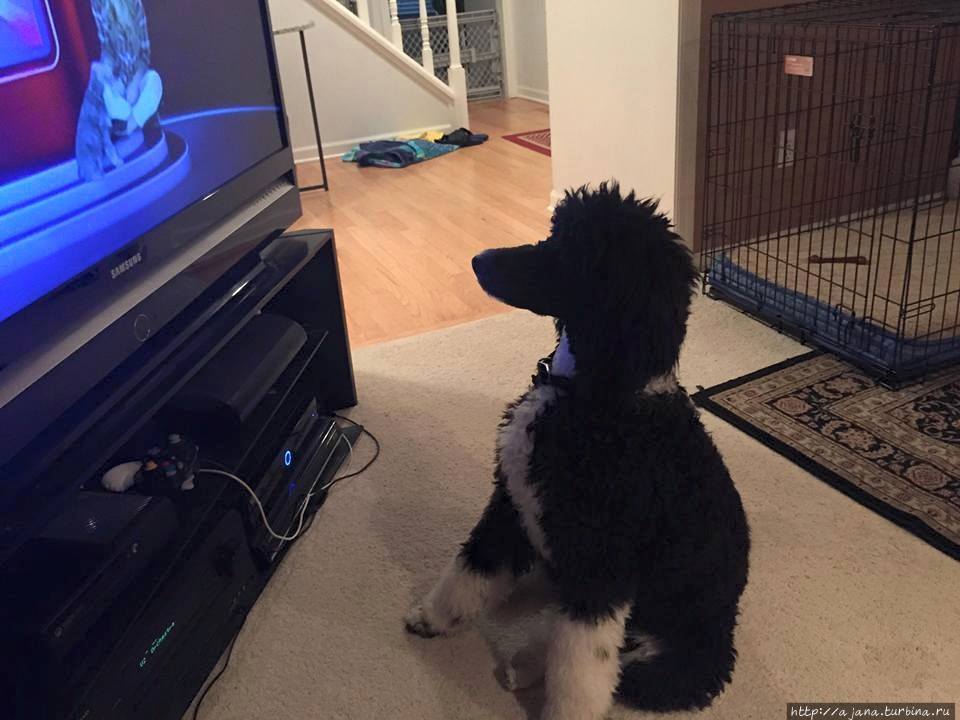 Если вас не удивляет специальное меню для собак, то наверняка порадует отдельный телеканал — dogTV (dogtv.com) Продюсеры канала утверждают, что просмотр телеканала благотворно влияет на питомцев, оказывает релаксирующее действие, стимулирует активную деятельность с мячиком, да и вообще, составляет компанию в отсутствии хозяев.