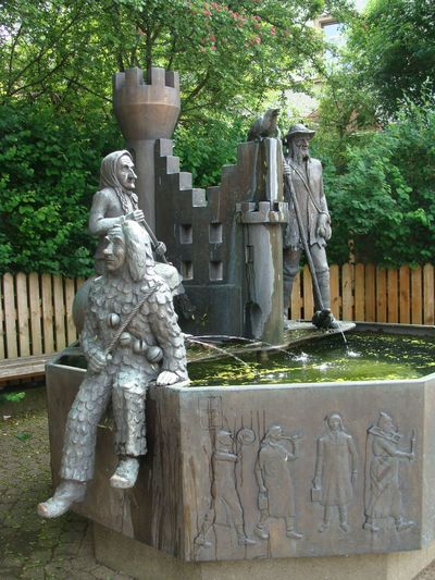 Фонтан окружают фигуры лесников — Велдеров и Хюлеров. Вельдеры начинают карнавальный сезон, ставят чучело зимы, а хюлеры его сжигают в конце сезона в Пепельную среду.