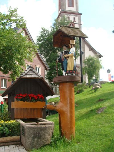 В Шварцвальде и его окрестностях чрезвычайно популярен Карнавал, Фастнахт — проводы зимы. В городах и поселках часто можно встретить фонтаны, украшенные фигурами типичных карнавальных персонажей. Такие фонтаны чаще всего ставят недалеко от карнавальных клубов, но необязательно. Вот такой фонтан я увидела в