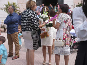 Подошла поближе. Увидела, что все празднично одеты, очень много детей. Дети особенно нарядны. У многих в руках букеты. Радостные приветливые лица. Многие фотографируются семьями.